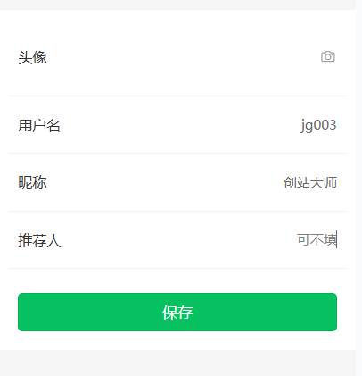 4、修改用户名:点击“我的”->“个人信息”可上传头像、修改用户名、昵称、推荐人。